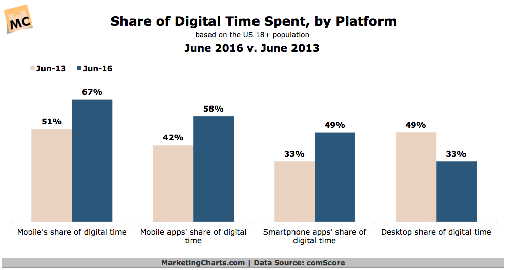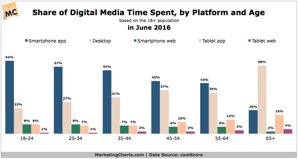 - Mobile apps have wildly surpassed desktops in digital media engagement.