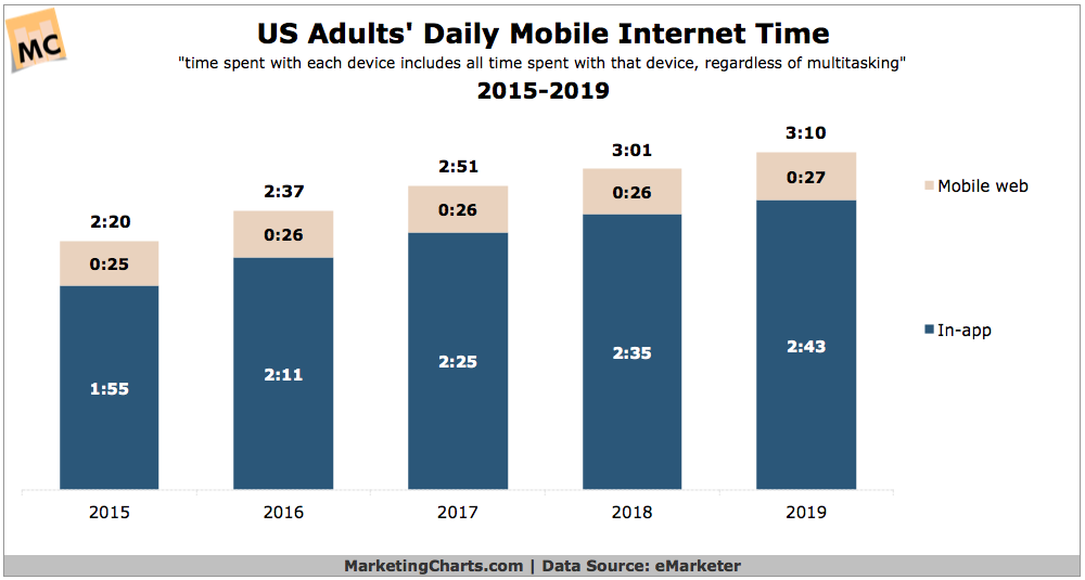 Not surprisingly mobile application usage is projected to grow at a steady rate over the next two years while mobile web usage grows is expected to flatline.